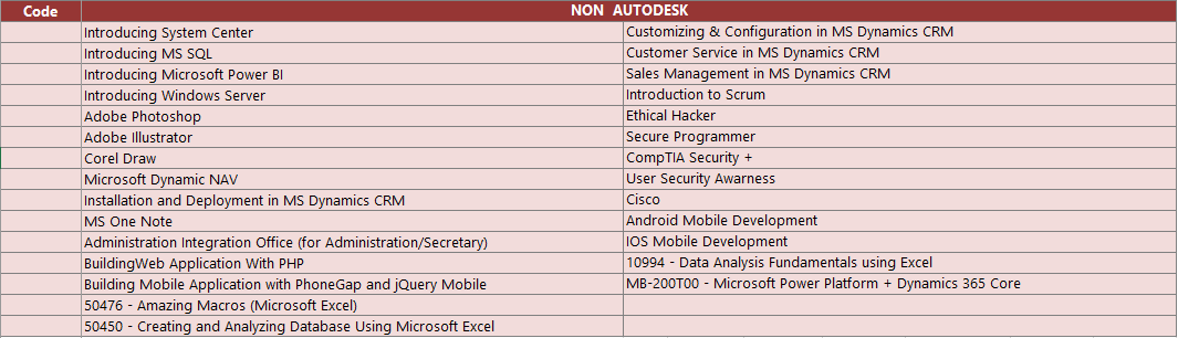 Digital Forensic Kaspersky Risk IT Framework Macromedia Primavera VMware Sophos Adobe Photoshop Light Room Esential Design Web with Adobe Dreamweaver Design with Adobe Illustrator & InDesign Interactive Animation with Adobe Flash Others